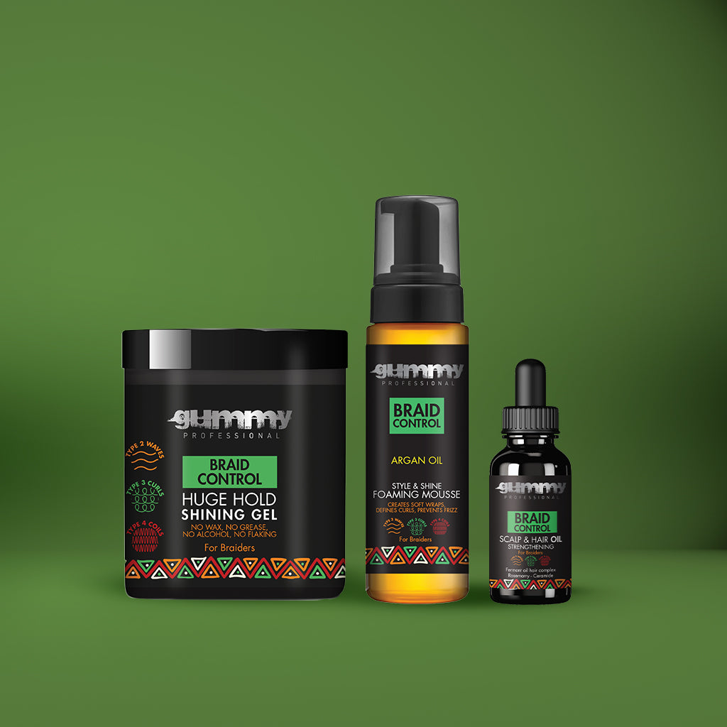 Specially designed for braiders, enriched with Ceramide and Ferment oil Hair Complex, Gummy Scalp & Hair Strengthening Oil nourishes hair and scalp, helping hair look vibrant, shiny and strong. It moisturizes hair without weighing it down. It also offers a pleasant fragrance